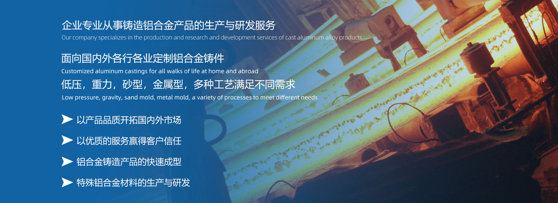 本公司致力于引進先進的鋁合金新材料和鑄造技術理念及標準,專注于鋁合金鑄造產品開發、生產和服務,緊緊圍繞技術創新,為客戶提供滿意的技術服務及優質可靠的產品。堅持以鋁合金鑄造加工生產和服務為主體,建立、實施并持續改進質量管理體系,為增強顧客滿意不懈努力。產品廣泛應用于特高壓電氣組件、醫療器械、藥品包裝機械、汽車零部件、空壓機部件、高速機床、能源裝備及軍工部件等領域。